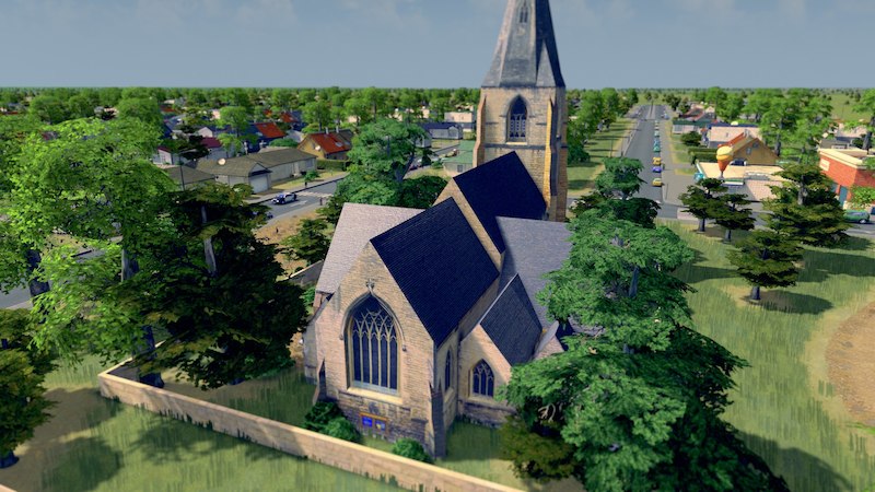 Il s’agit donc d’une église (ma foi jolie) ou plutôt d’un batiment fonctionnant comme une école. Par rapport à l’école classique sa capacité d’élèves est à peu près 3 fois moins importante pour un coût d’entretien bien plus important au final (x2 environ, voir plus bas pour détails) mais consomme très peu d’électricité et très peu d’eau. 3 places de parking.