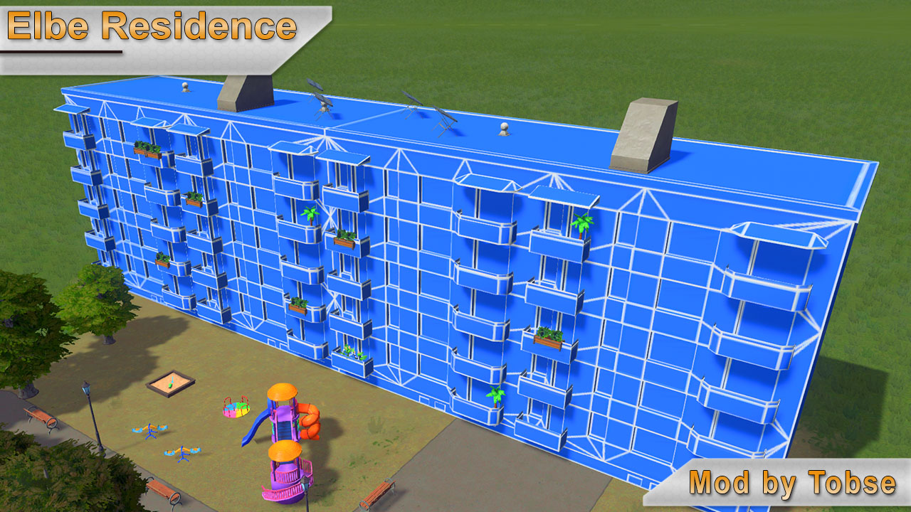 Overlay issue with nearby buildings, The Reason is the asset editor can handle only 4×4 tiles but the Elbe Residence need 8×4 tiles, to fix that issue.