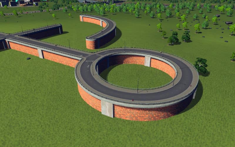 Beautiful Elevated Two-Lane Road over a Brick Wall. It is traced like any vanilla road, the wall will follow the curve of the road!