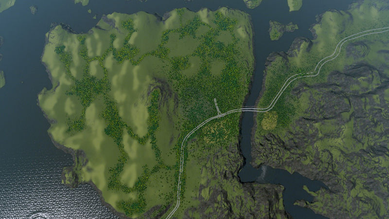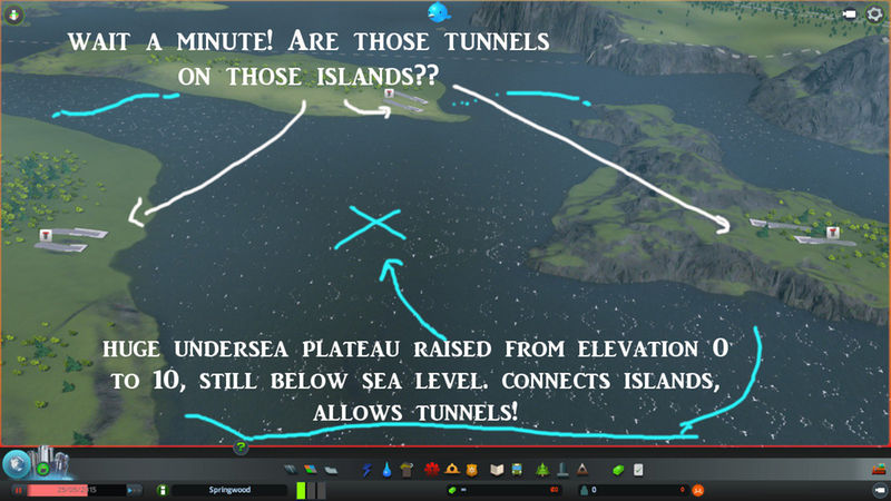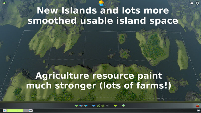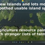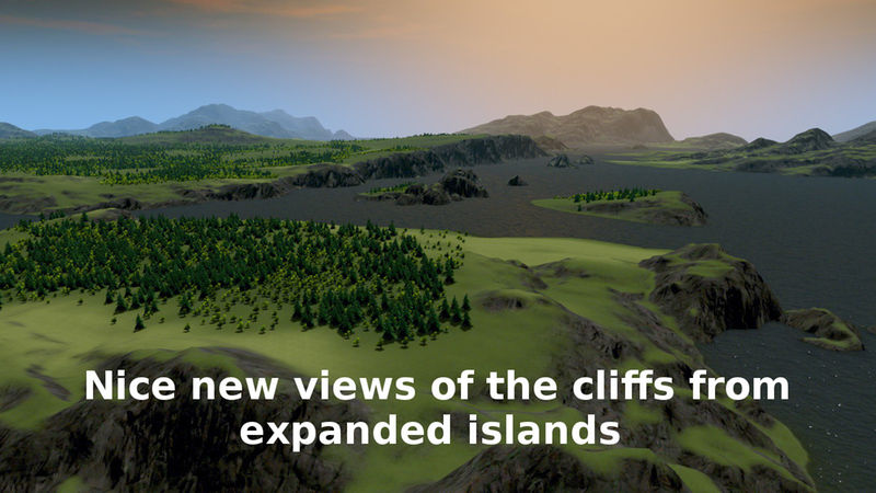 – LOTS more island space, as well as some changes that allow easy tunnels from mainland to all the islands!. You may run into some “slope too steep” esp from the mainland. Look for where I made the cliff “roads” down from the mainland down to the sea (tiny beaches).