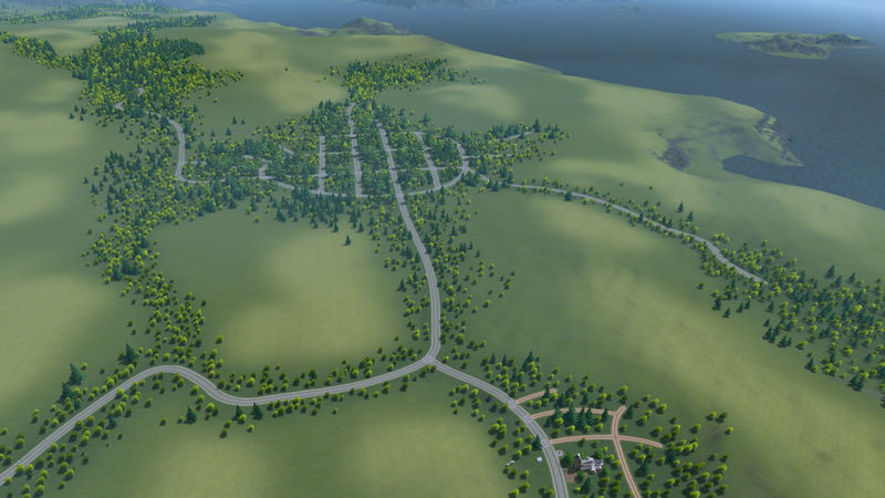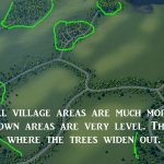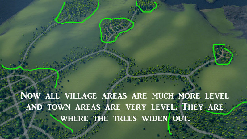 – newly leveled areas for little villages and small towns marked by areas of trees