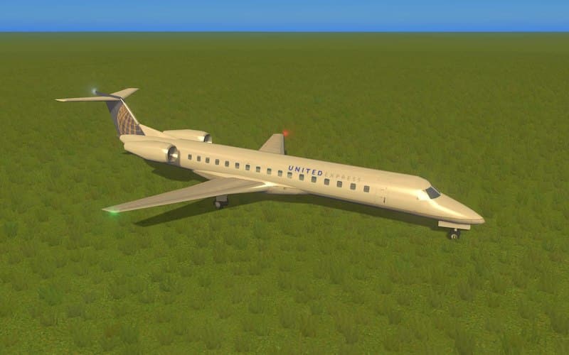 A model of an Embraer ERJ-145 aircraft. The texture on the aircraft is that of United Express.