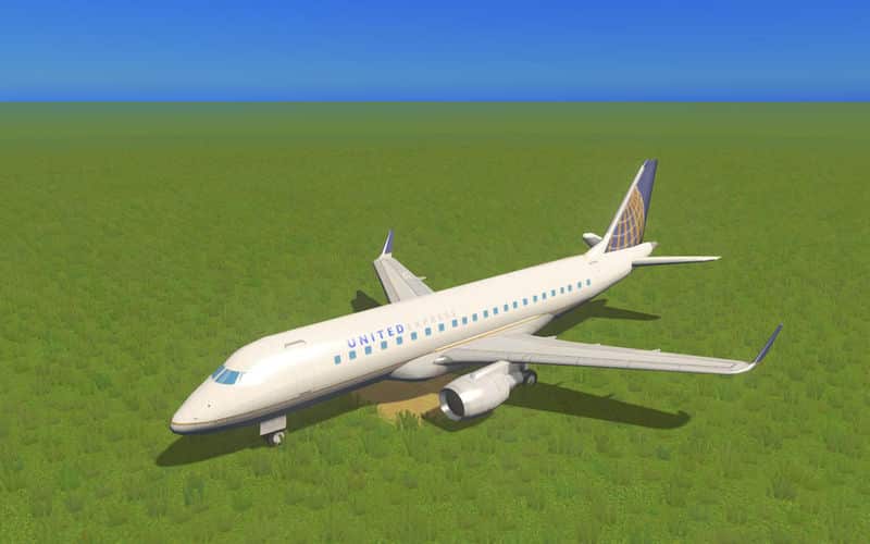 A model of an Embraer ERJ-175 aircraft. The texture on the aircraft is that of United Express.