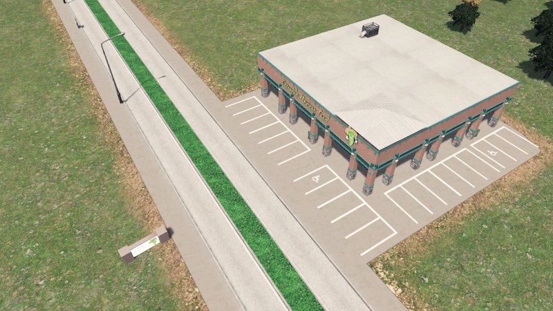 Includes sign prop. Found in the Billboards tab when using More Beautification mod. If you have a search mod just search “Riverpark.”