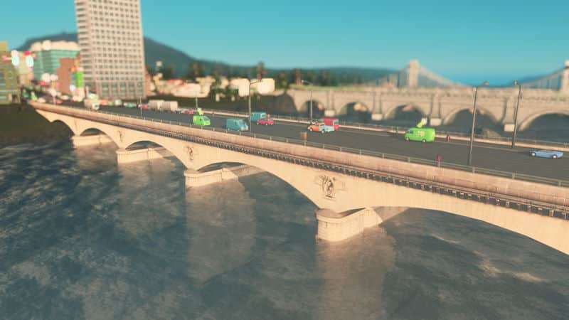 Although not essential to load the model into the game, a number of mods are required in order to be able to place road pieces on top of the bridge without their associated bridge furniture which would obviously clash with the model and look terrible. NO pillars mod, Fine Road Anarchy, Move It, and Fine Road Tool are all recommended to be used in combination to achieve this.