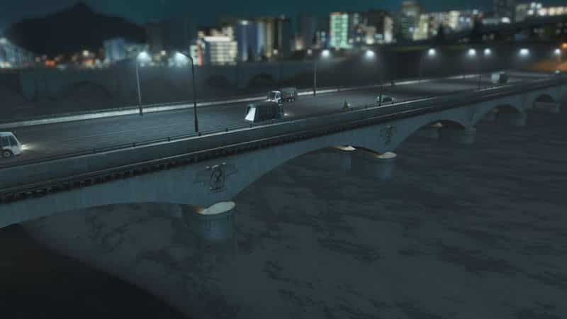 Although not essential to load the model into the game, a number of mods are required in order to be able to place road pieces on top of the bridge without their associated bridge furniture which would obviously clash with the model and look terrible. NO pillars mod, Fine Road Anarchy, Move It, and Fine Road Tool are all recommended to be used in combination to achieve this.