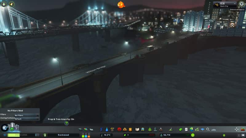 Although not essential to load the model into the game, a number of mods are required in order to be able to place road pieces on top of the bridge without their associated bridge furniture which would obviously clash with the model and look terrible. NO pillars mod, Fine Road Anarchy, Move It, and Fine Road Tool are all recommended to be used in combination to achieve this.