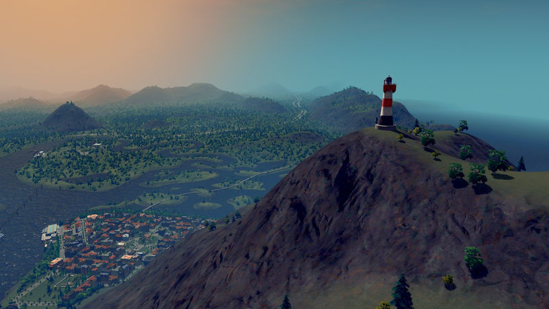 – Very high overlook point with a bit of leveled area and winding ramp for 2 lane or dirt road for access to the top. In real life, this mountain has lighthouses and a cool fortification, and is quite the climb!!