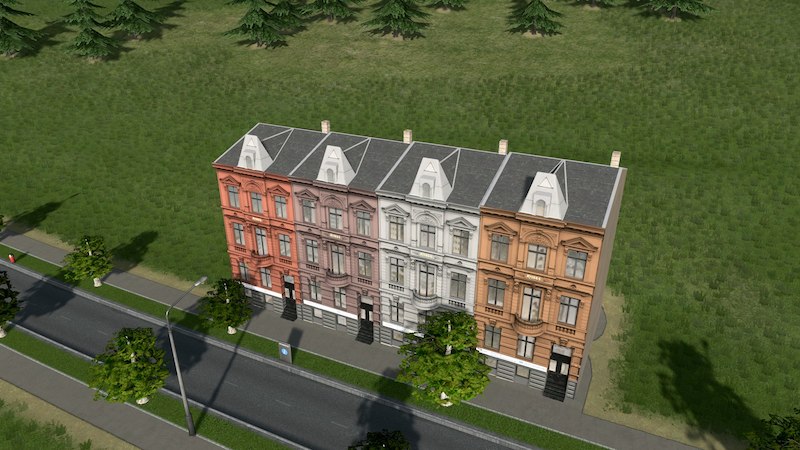Part of my future Euro theme: You will be able to grow a city from small 2 story buildings to big 6 story buildings, all within the high residential zone.