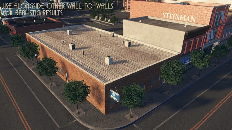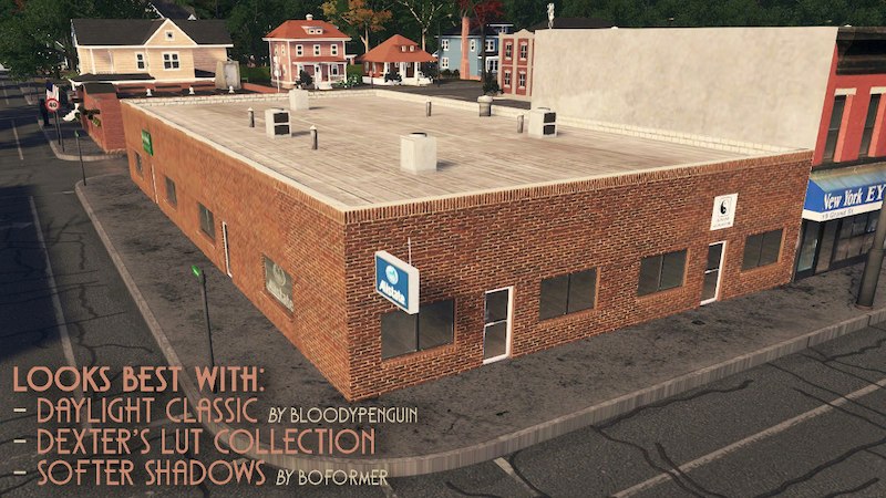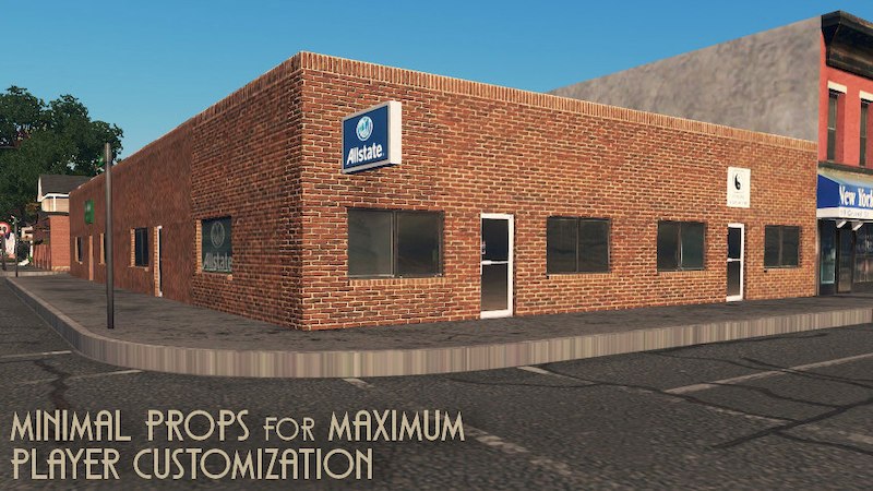 Evans Corner is my first ever asset and will lead my Main Street Americana collection, a collection of small storefront buildings based upon real-life examples of American 20th-century vernacular architecture. The goal is to allow players to create realistic historic districts, Main Streets and old-towns. Many, if not most, of the buildings in this collection would be classified as “filler” — but don’t let that dissuade you from fully appreciating them!