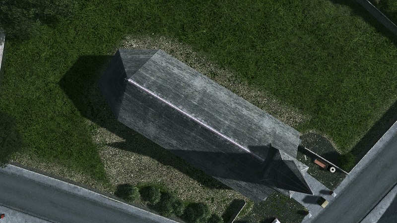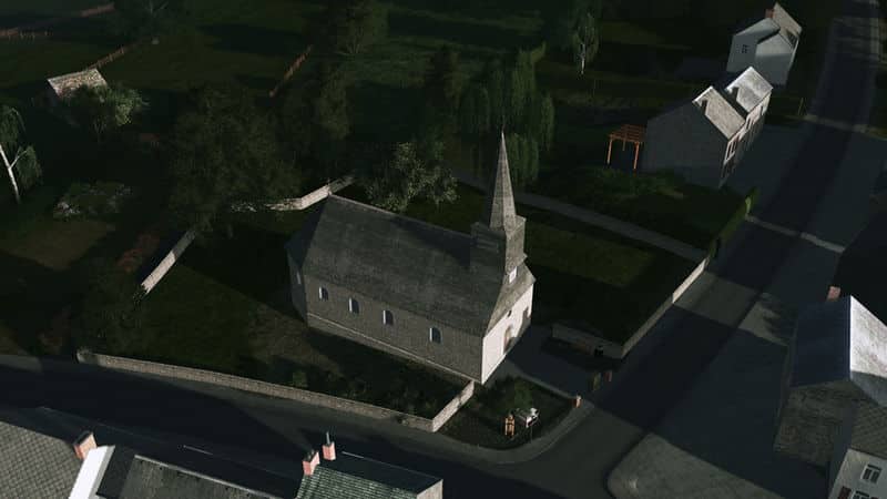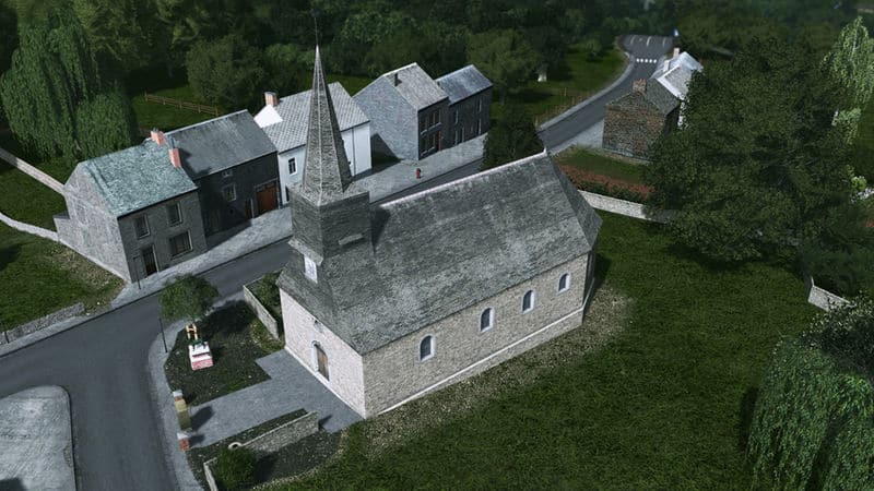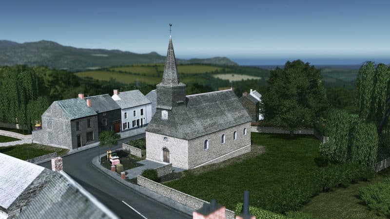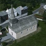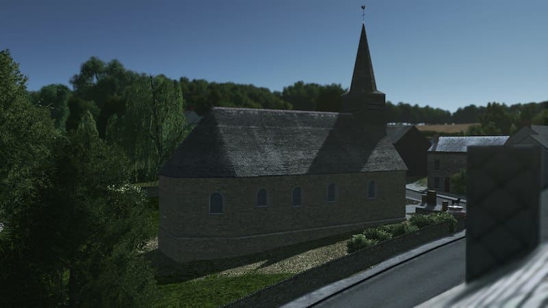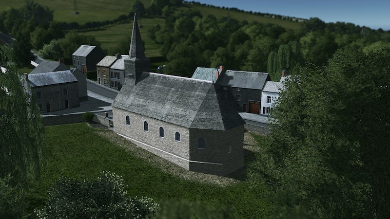 Picturesque small stone church from the village of Fagnolle, Belgium (Eglise Saint-Martin et Saint Jacques de Compostelle, 16th-19th century).