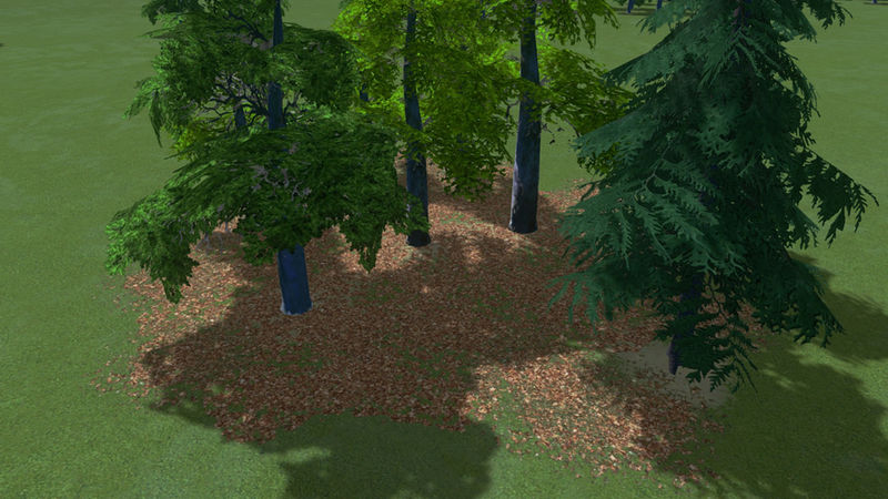 Use ‘More Beautification’ to place the props in the game (works without in the asset editor). These are decal props, that means the texture will be placed directly on the terrain.