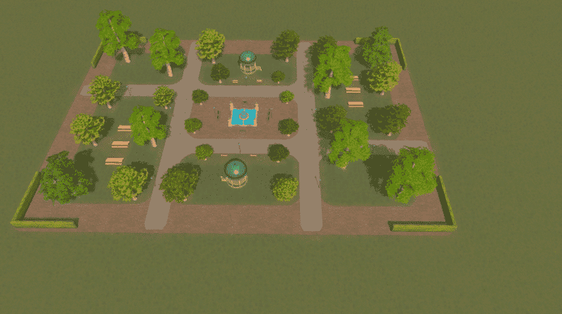 Family Park Is a 14 x 10 park with picnic tables, gazebos and a central fountain.