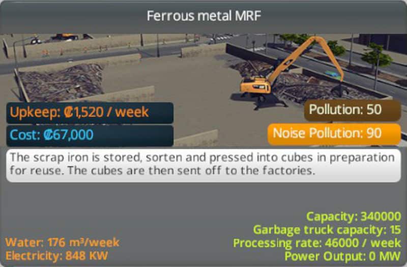 Ferrous metal materials recovery facility. Stats are in the last screenshot.