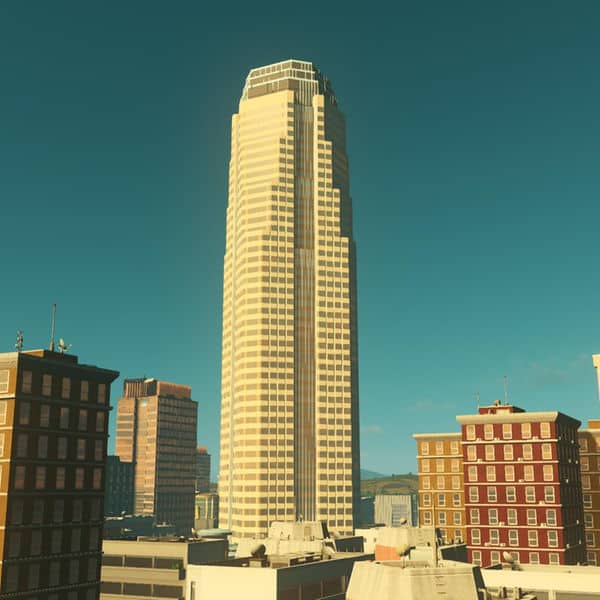 What a great example of postmodern architecture. Unlike international style this office tower has a distinctive base, shaft and crown. Notice the turquoise facade elements. Very typical color for the late 80’s. With 220m this office tower is in height very typical for downtown L.A. but at night Figueroa shines out all its neighbors. Probably one of the best illuminations in the world.