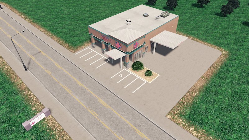 The asset is found in the Health tab and is a corner piece for the Riverpark Shopping Center pack.