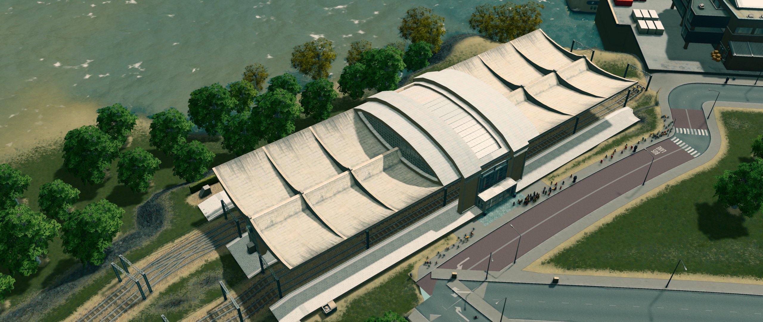 With the warnings out of the way, this is an entirely fictional 4-track trainstation. Going for that “Concrete monster that is way to large, run down, industrial train station” look