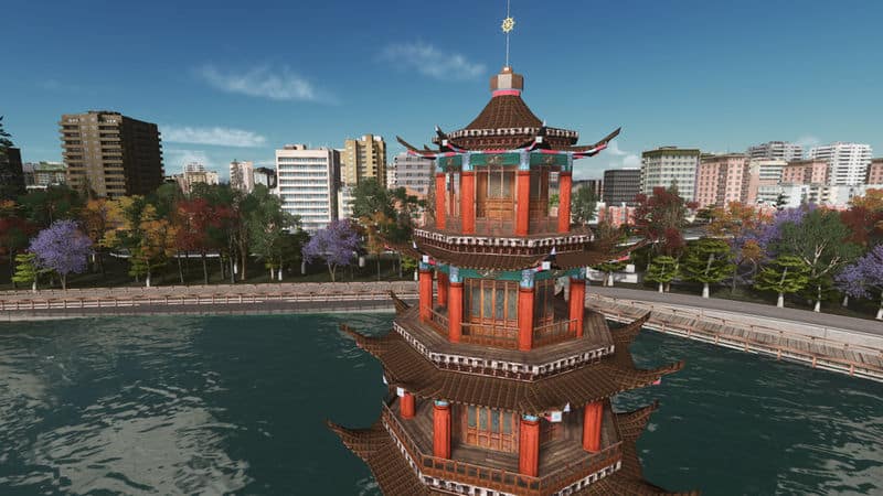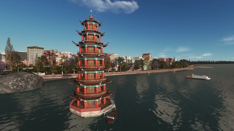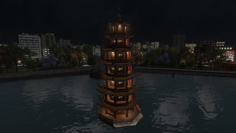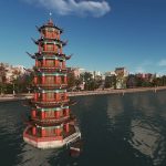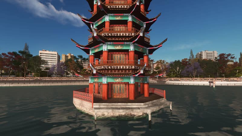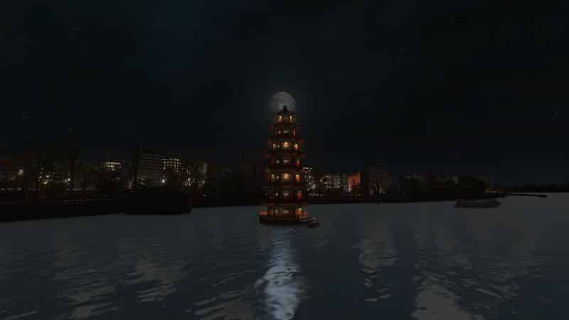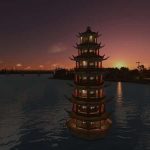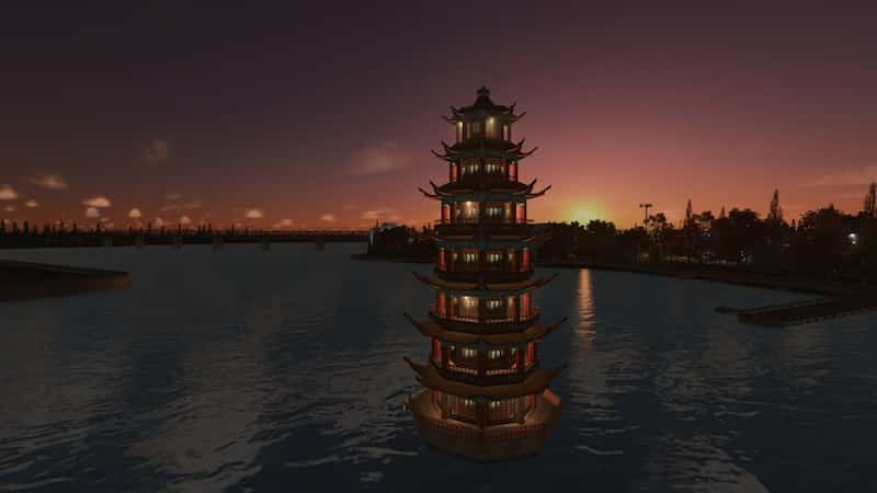 Hello. This pagoda is based on the Sun & Moon Pagodas in GuiLin, China. My version is a mash-up of the two pagodas. It stands at around 36m and 16.5m diameter, place on water. I hope the tri count is not too high for a small model.