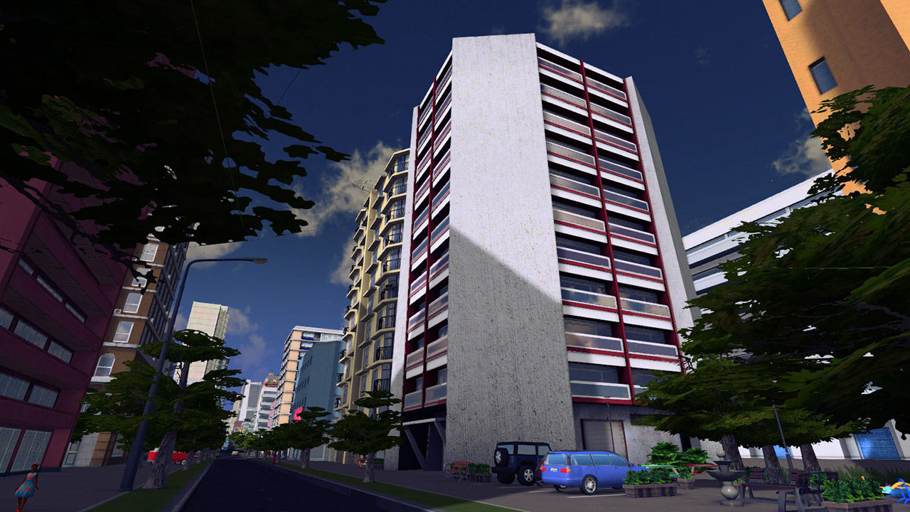 The residence is a 10 floors – 40 meters tall habitation building, it has been designed to fit well into the existing ingame buildings of this level.