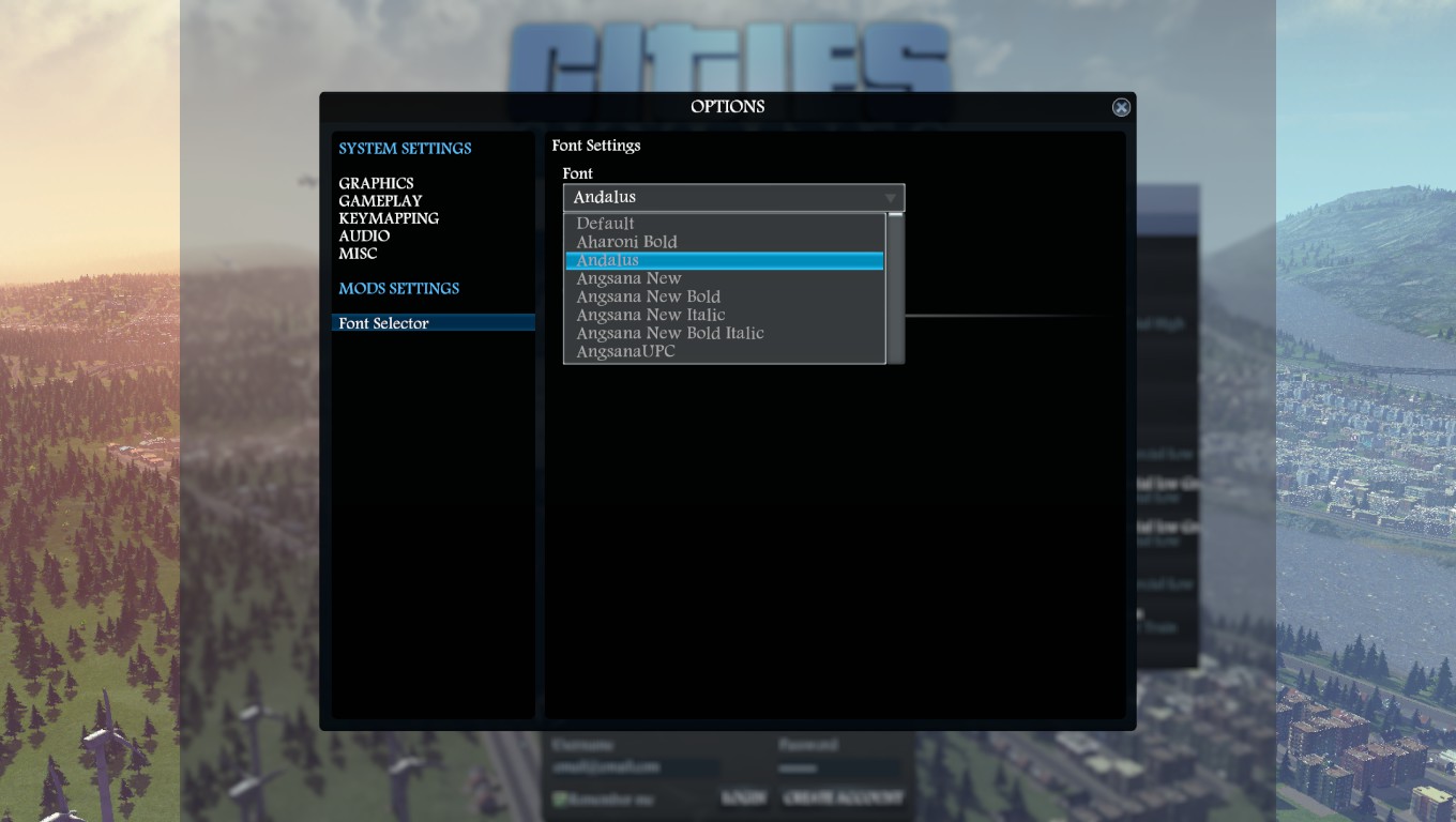Adds options for Font/BaseSize in OPTIONS menu in the game and enables to change the font and size dynamically.
