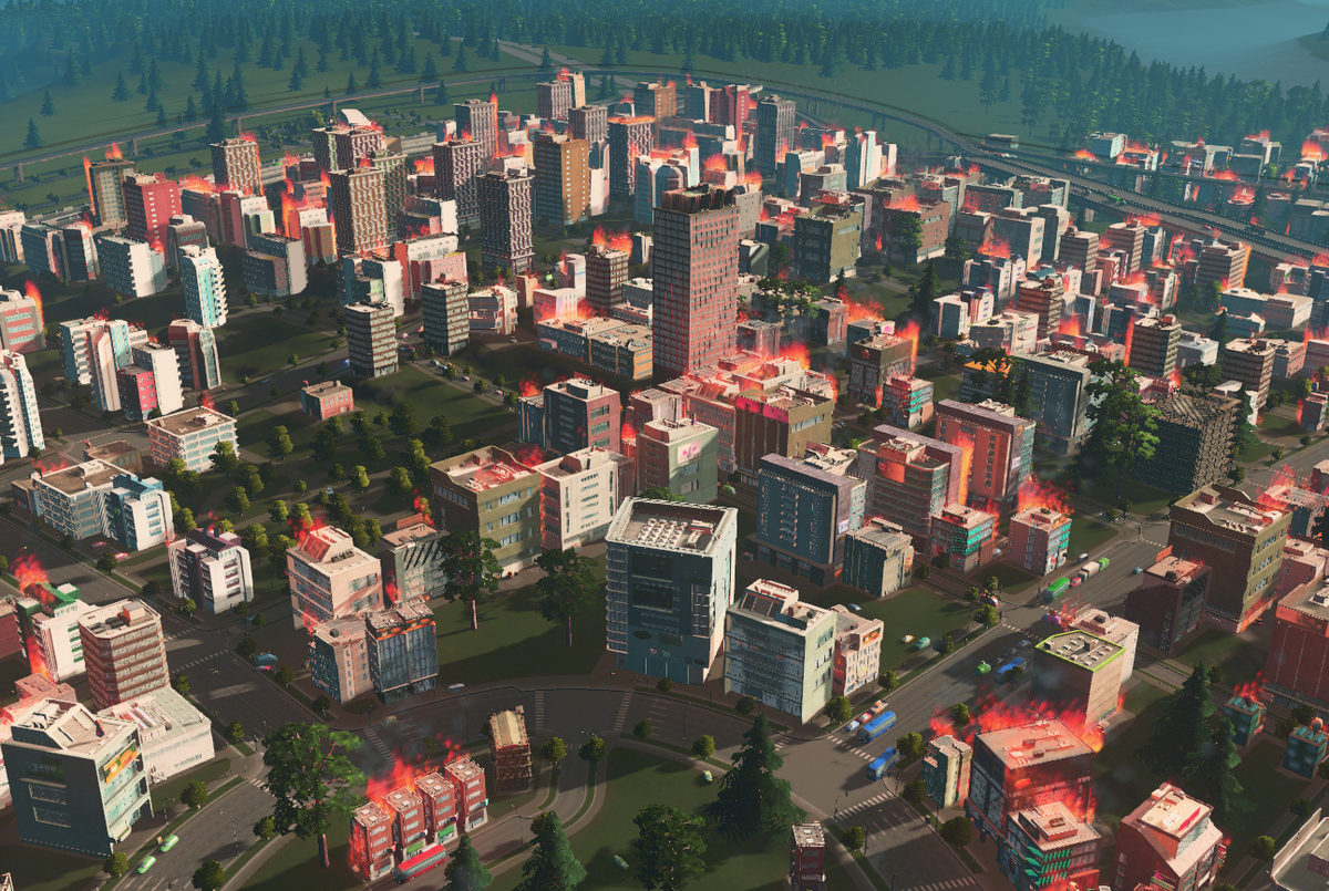 Bonus feature: Nero mode – set building/district on fire. Be careful, huge FPS drops possible if you set whole district on fire!