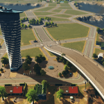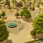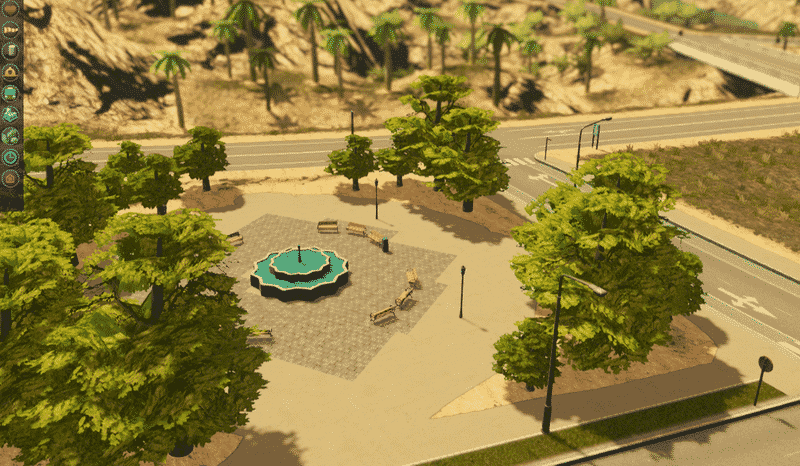 A unique star-shaped fountain is the centrepiece of this plaza. I love fountains, but there are a limited number of them available in the asset editor. So I made this one to add some variety.