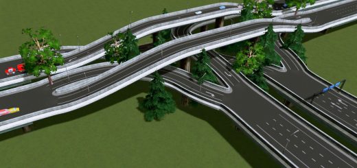 This design provides the least congestion of any of my Free Flow designs. To save on initial cost and to prevent some slope issues this one doesn’t include the paths, but it is designed so that you can link the whole thing with walking paths that go over the roads. Take note of the central square, which is designed as the perfect spot for a metro station and is the real key to this design’s success.
