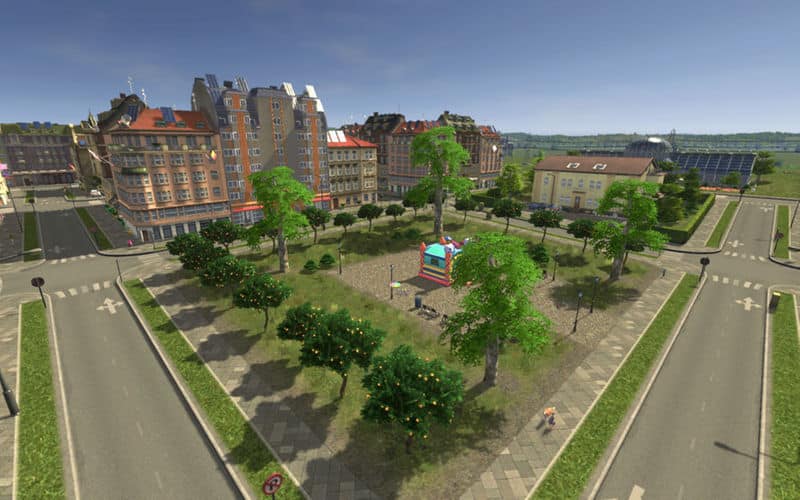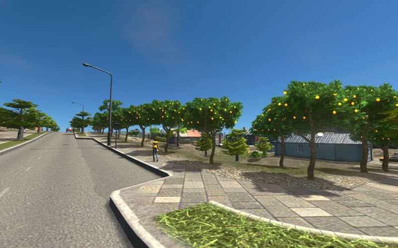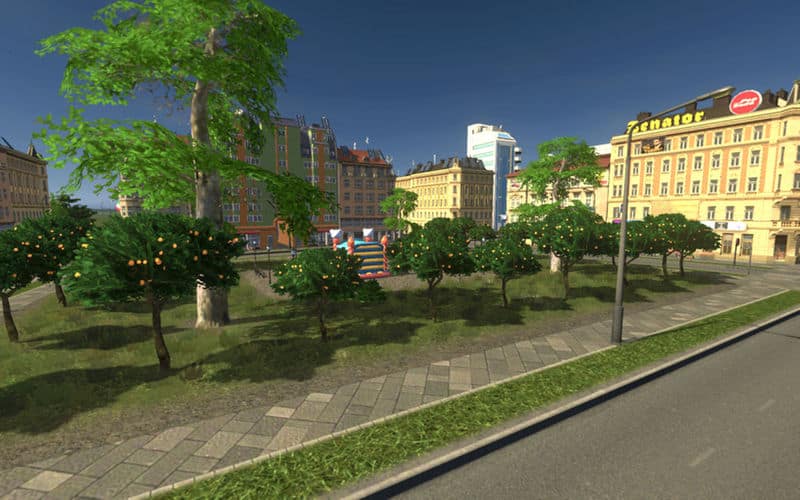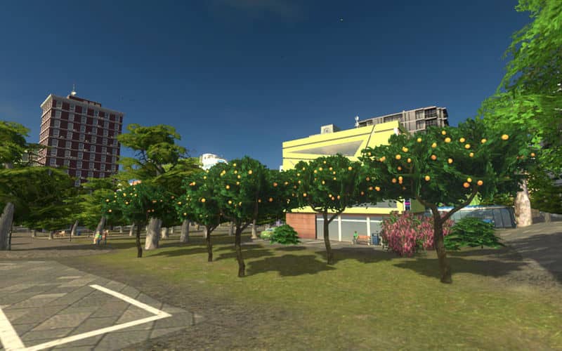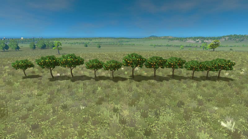 Smaller oranges (indeed, previously was too big) and 3x numerous. Normal (bump) map added for some relief on bark at evening hours when shadows are longer.