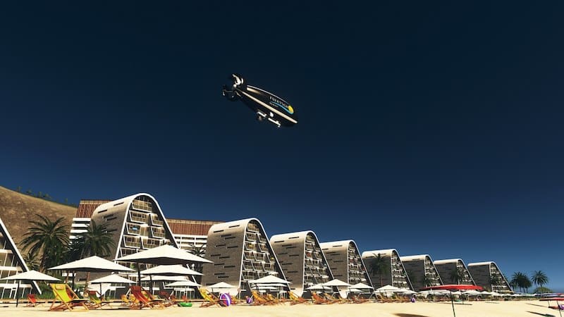 The blimp is fully functional: lights, rotors, linecolor, LOD, etc.