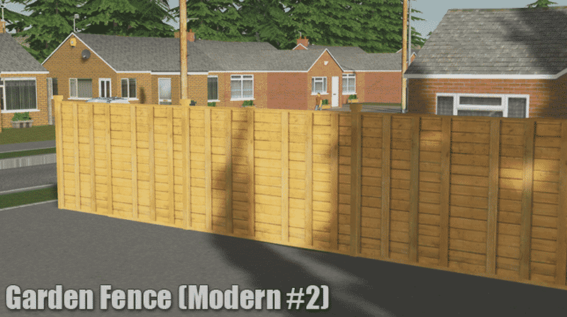 Modern garden fence mostly seen around various front and back gardens across the UK. This fence is a decrotive prop and is best used with the More Beautification Mod, which allows you to place props in game.
