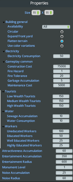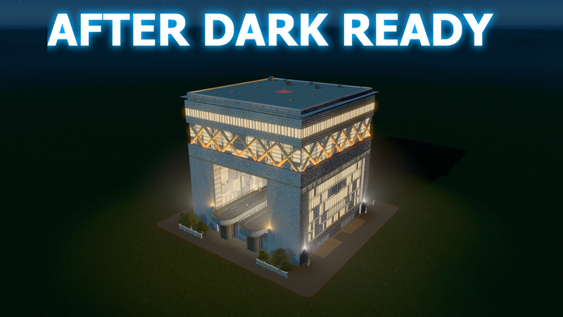 This model’s stats are in the picture stream. There are a few props that you should download on the side bar that will help make this building look rounded out. It’s a fully ploppable building – but you must connect it to a road as it has typical sewage/water consumption needs. You can find this building in the UNIQUE BUILDING tab on the last section. I believe I’ve set the building to be available right away.