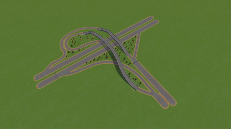 This interchange you can find in many countries in Europe like Germany. This one has a fly-over ramp.