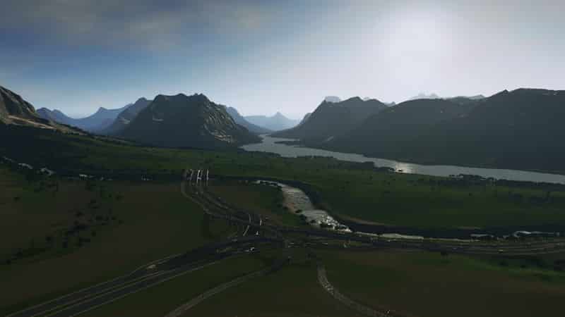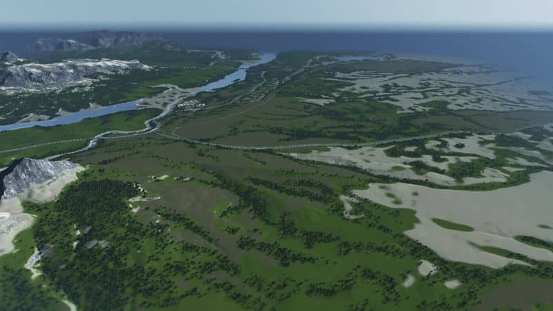 As the foundation of this map i’ve used a heightmap of the real location. To make this area more playable, several hills and plateaus have been softened/lowered and the Lower Saint Mary Lake has been extended towards the north to accomodate access for cruise and cargo ships.