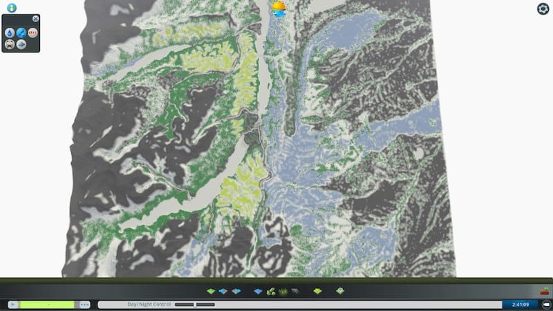 Ore and Oil resources are placed in an aesthetically pleasing pattern which also mimics the more barren landscape at the edge of the park.