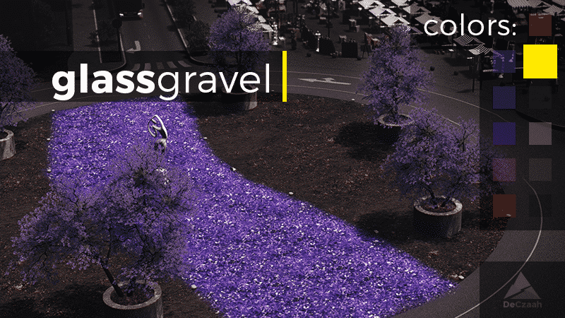 Glass gravel is a gravel-like product, made of recycled glass. It can be used as decoration in, for example, private and public gardens or parks, in roundabouts, for better presentation at stores and sale facilities, like car dealerships, and so on.