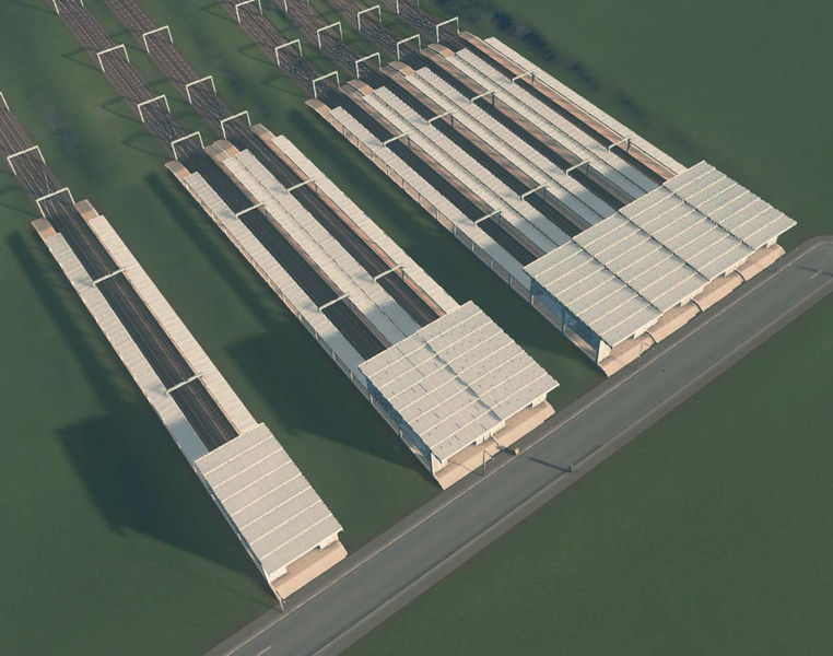 The station is one tile wide – multiple instances can be placed next to each other in order to create a larger station. The images above show two assets together.