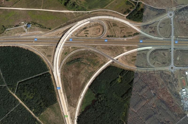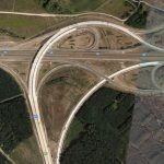 Gödöllő Interchange in Hungary. 5 way interchange consist of 3 way highway and 2 way avenue