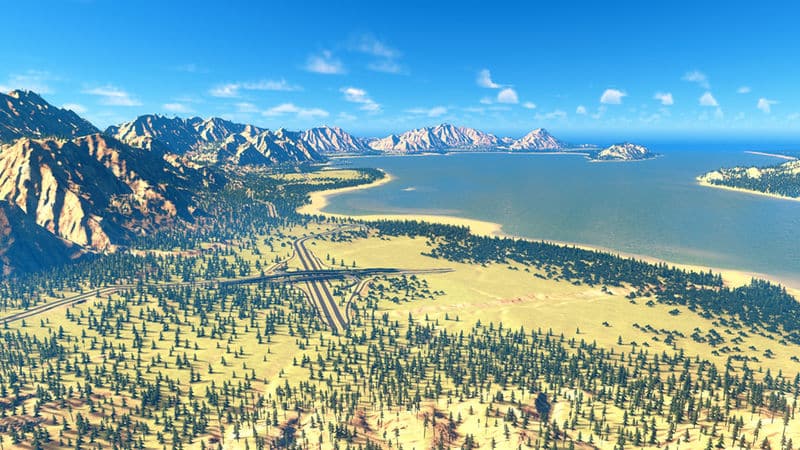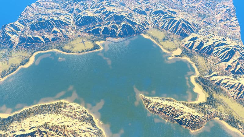 The height map I took from Provo, Utah and Utah Lake for reference. However, the water level is slightly higher than in reality and highway connections do not reflect real life highways either.