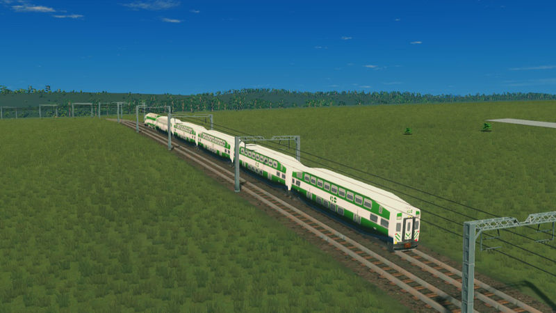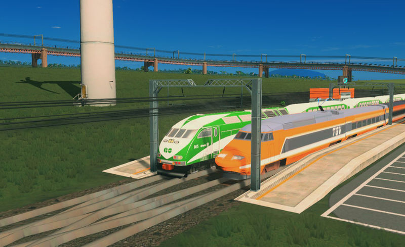 After a long delay (sorry! was carried away by work… then Kerbal Space Program!) here’s southern Ontario’s Go Train with the MP40 Locomotive.