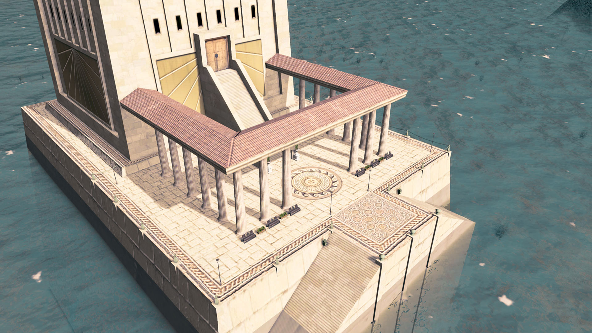 The Great Lighthouse of Alexandria, one of the Seven Wonders of the ancient world, was the highest lighthouse ever constructed up until the 20th century – between 115 and 160m (377 – 524ft). It was located next to the small island of Pharos outside of the port of Alexandria in Egypt and thus often itself named Pharos of Alexandria. Destroyed by two earthquakes in 1303 and 1323, the tower’s stones were used to contruct a Mamluk fortress around 1480.