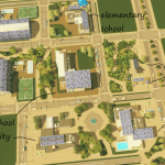 My idea was to build all types of schools and some other service buildings in similar style, so that they form a nice-looking campus area. All buildings have solar panels and therefore low energy consumption. They also use less water and produce less garbage than their vanilla counterparts.
