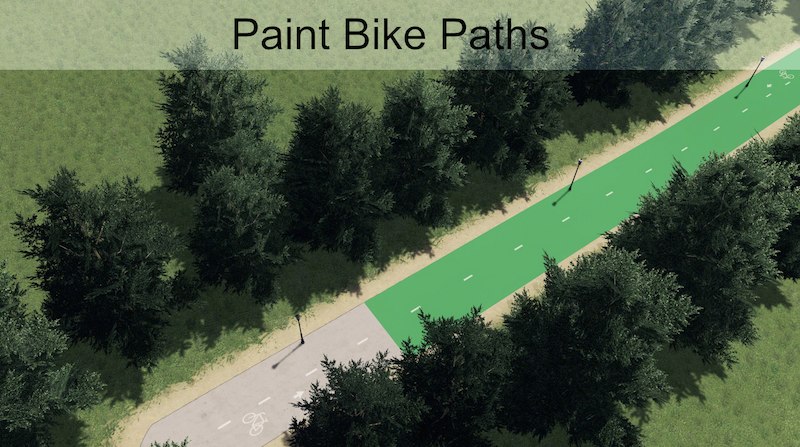 a solid green, 4×4 meter decal to paint bike paths and lanes with
