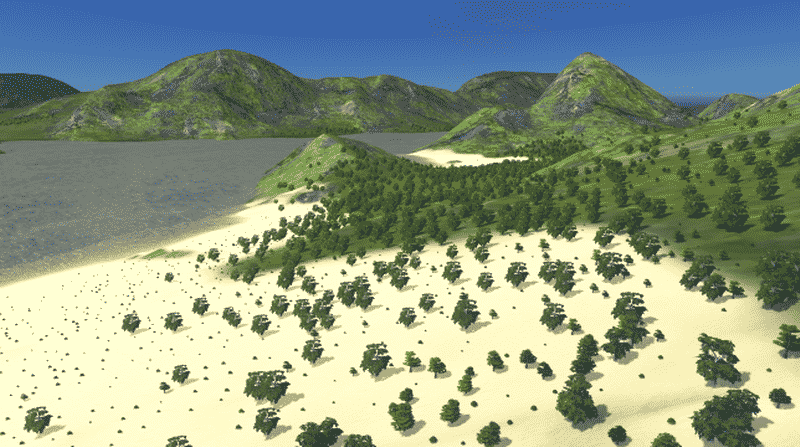 A temperate map theme with gray mountains covered with foliage of varied green.