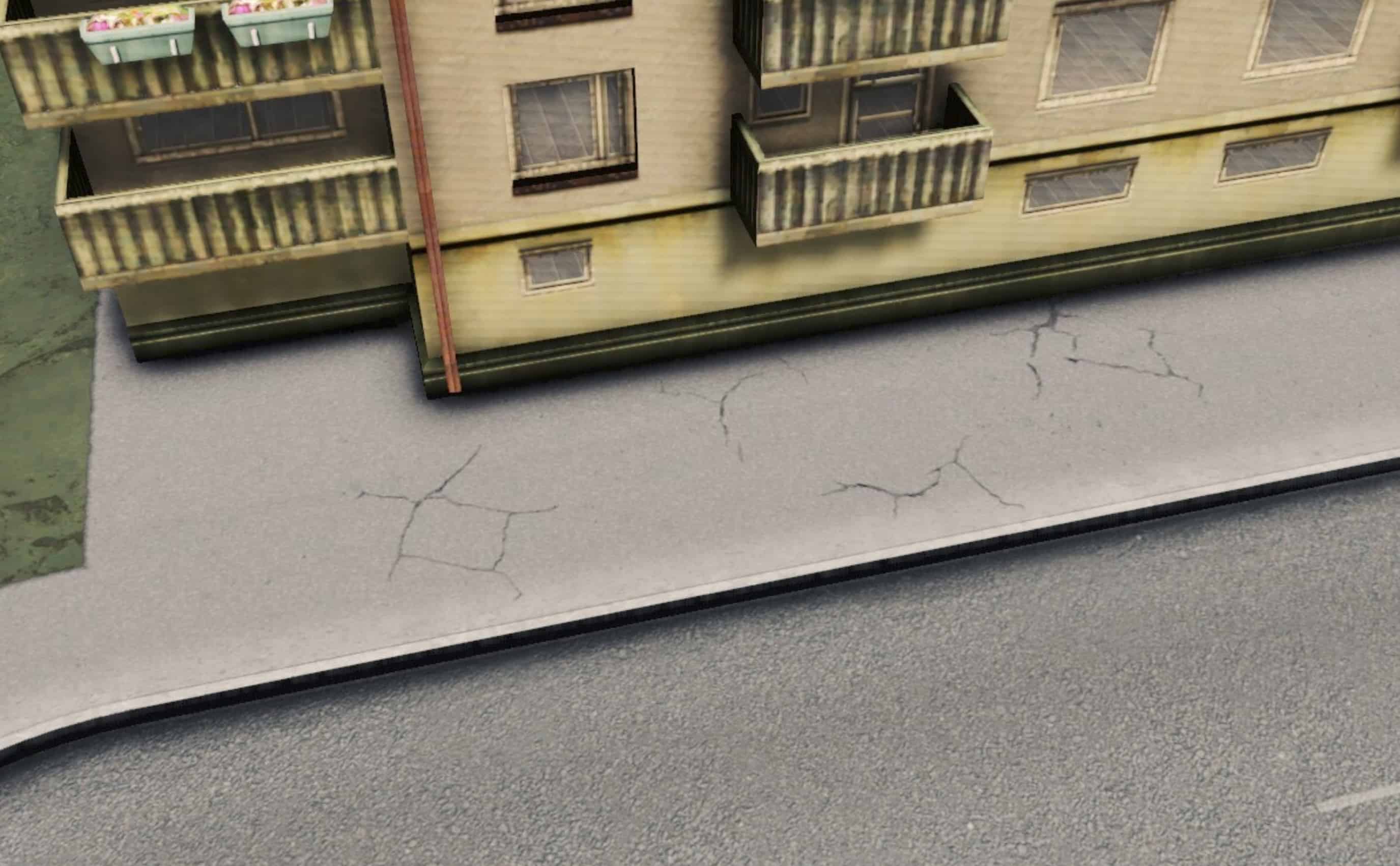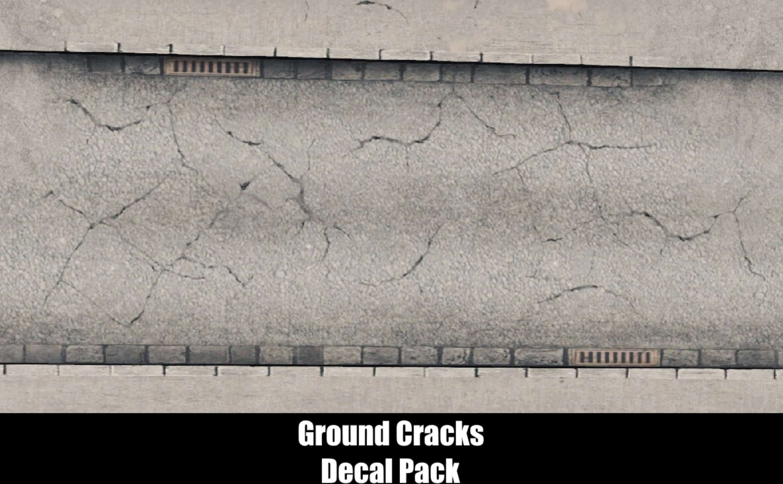 A pack of Ground Cracks with transparent backgrounds to use around your city. All textures are 512×512 and were created by me. This pack includes 4 cracked decals.