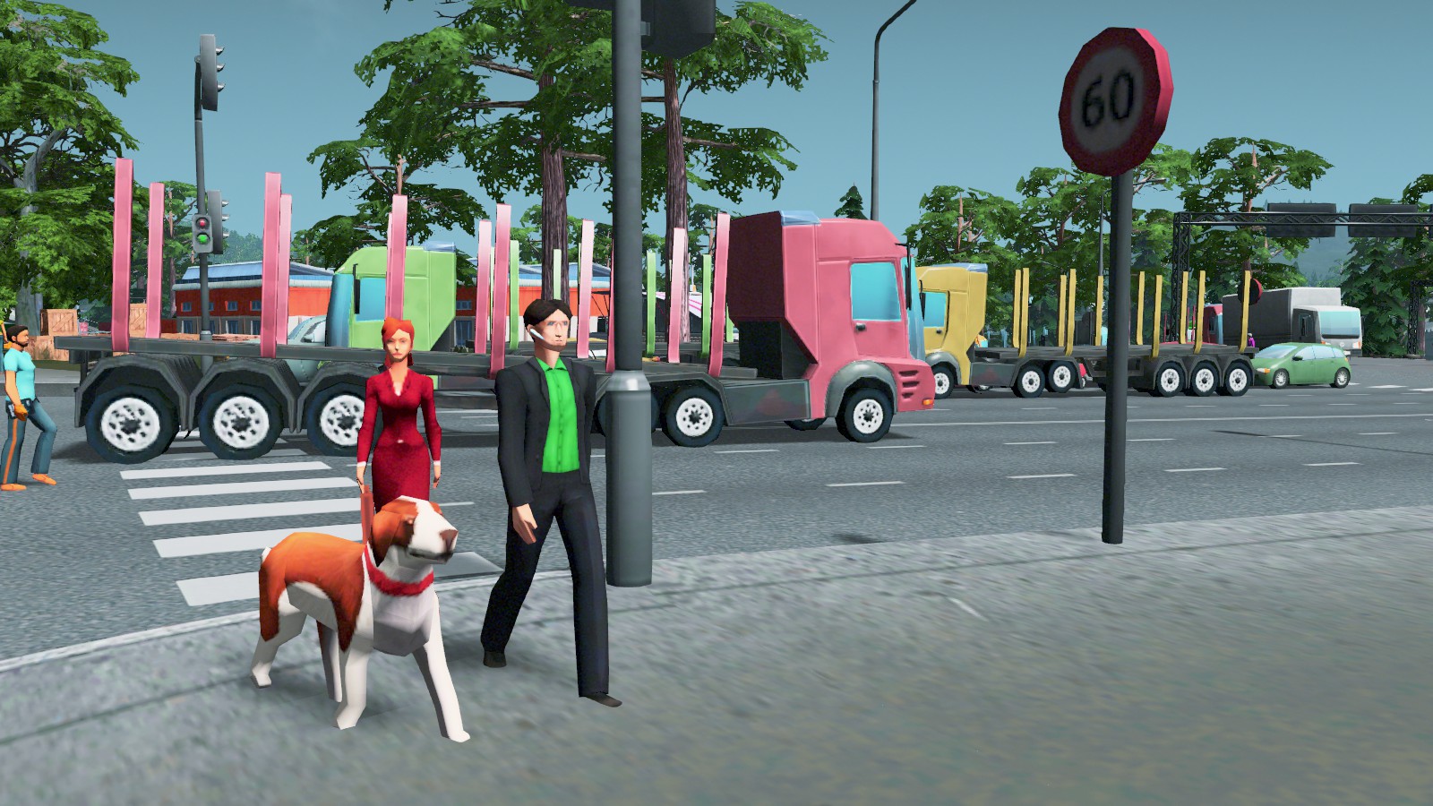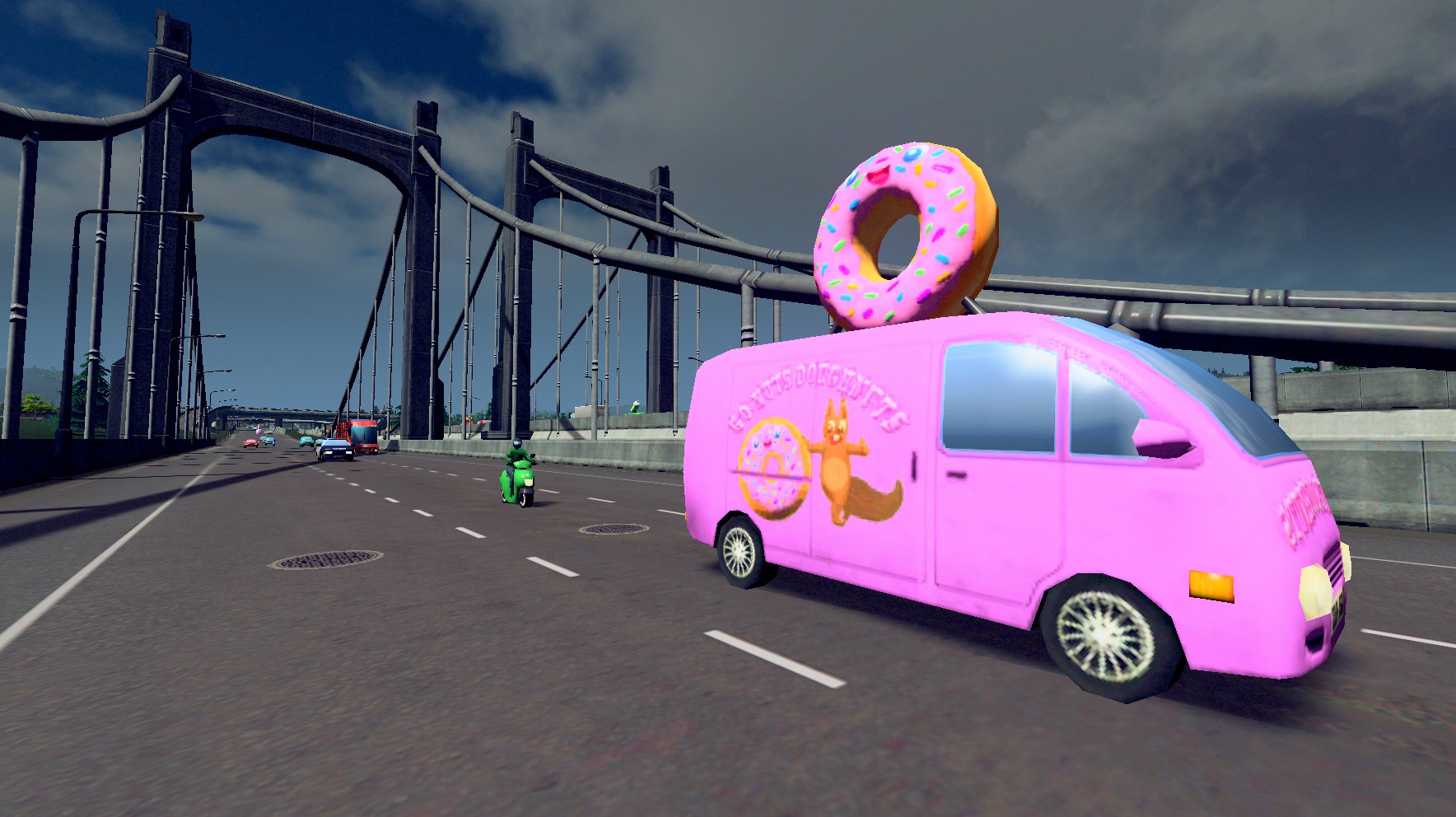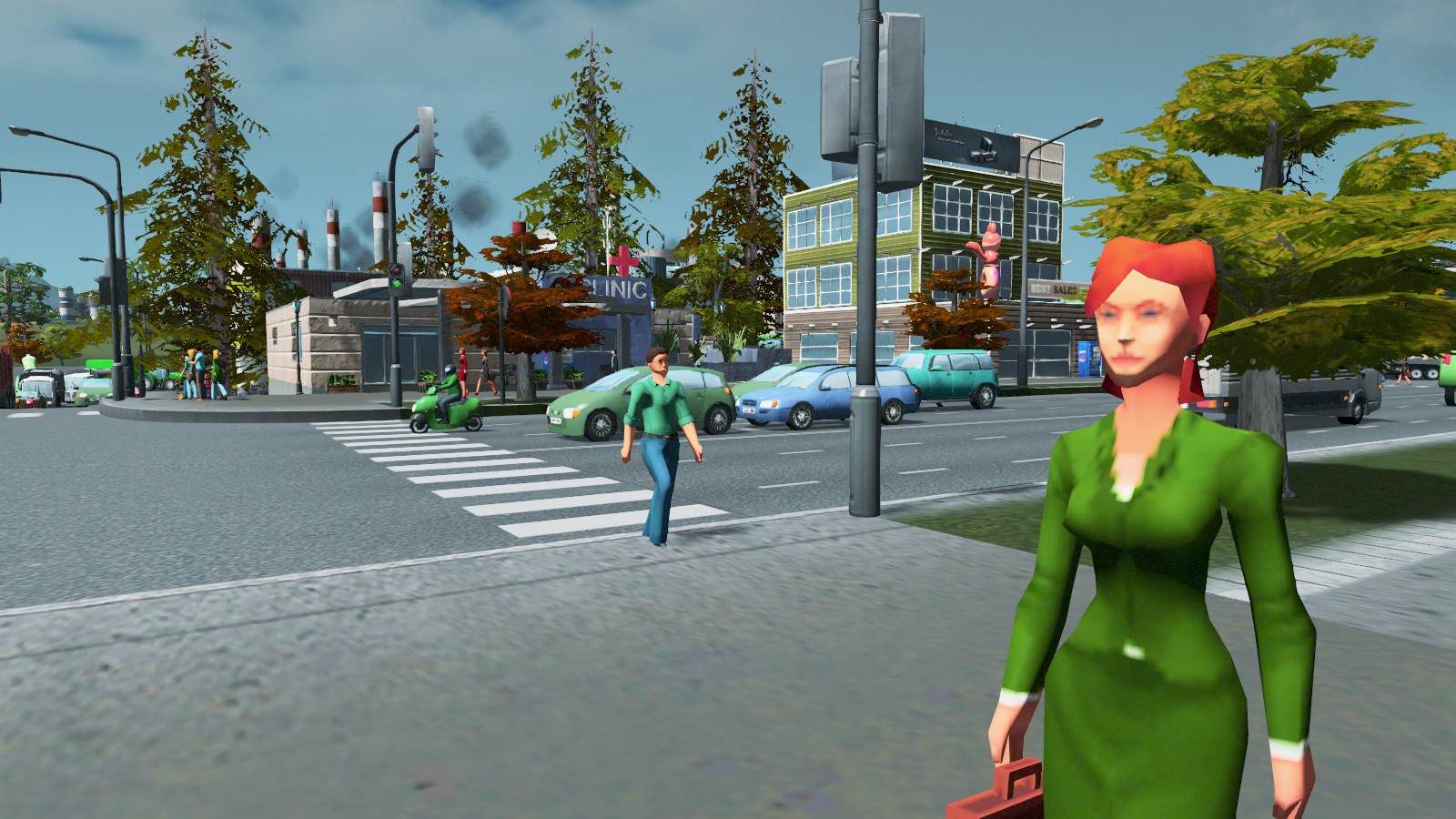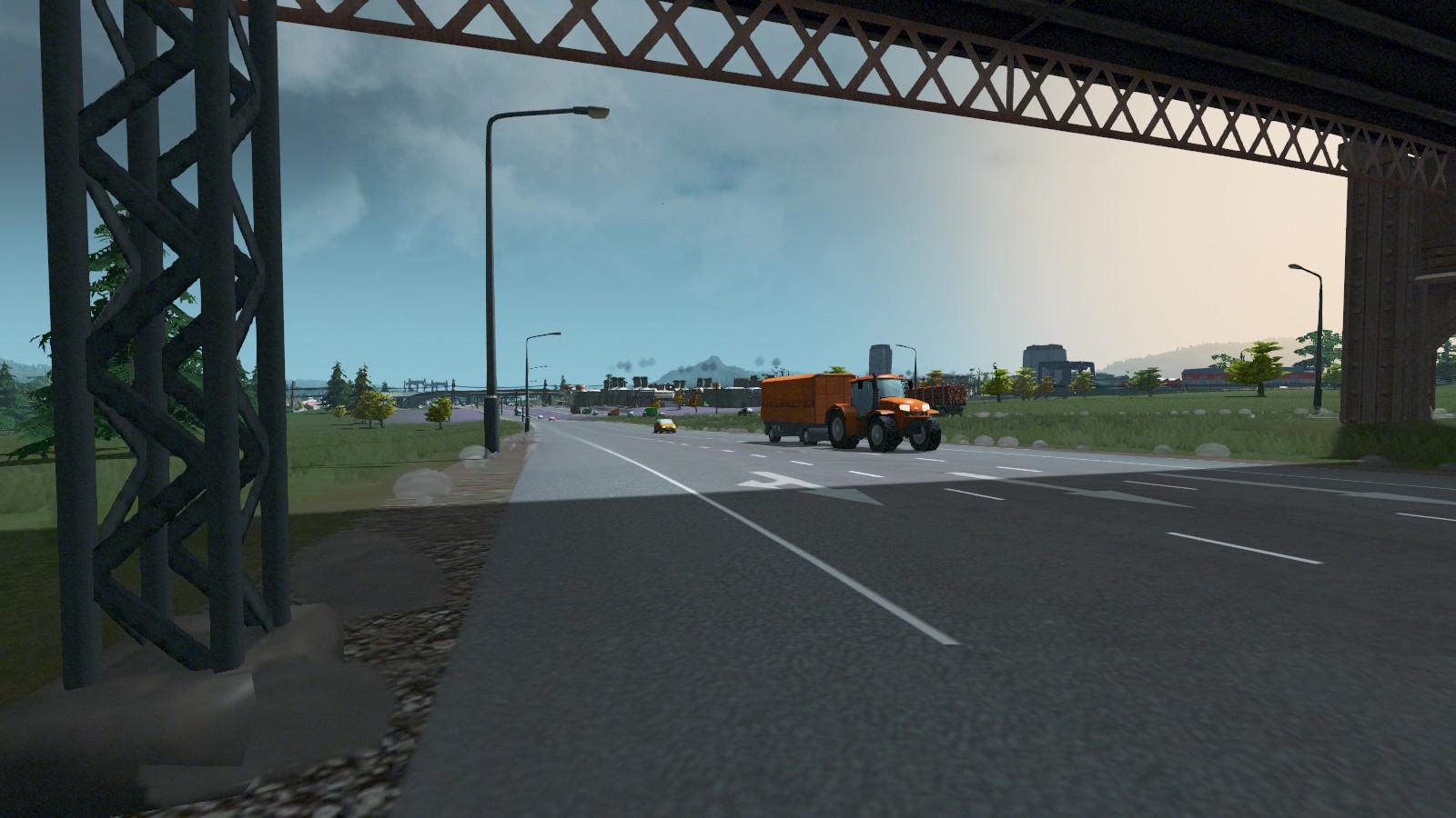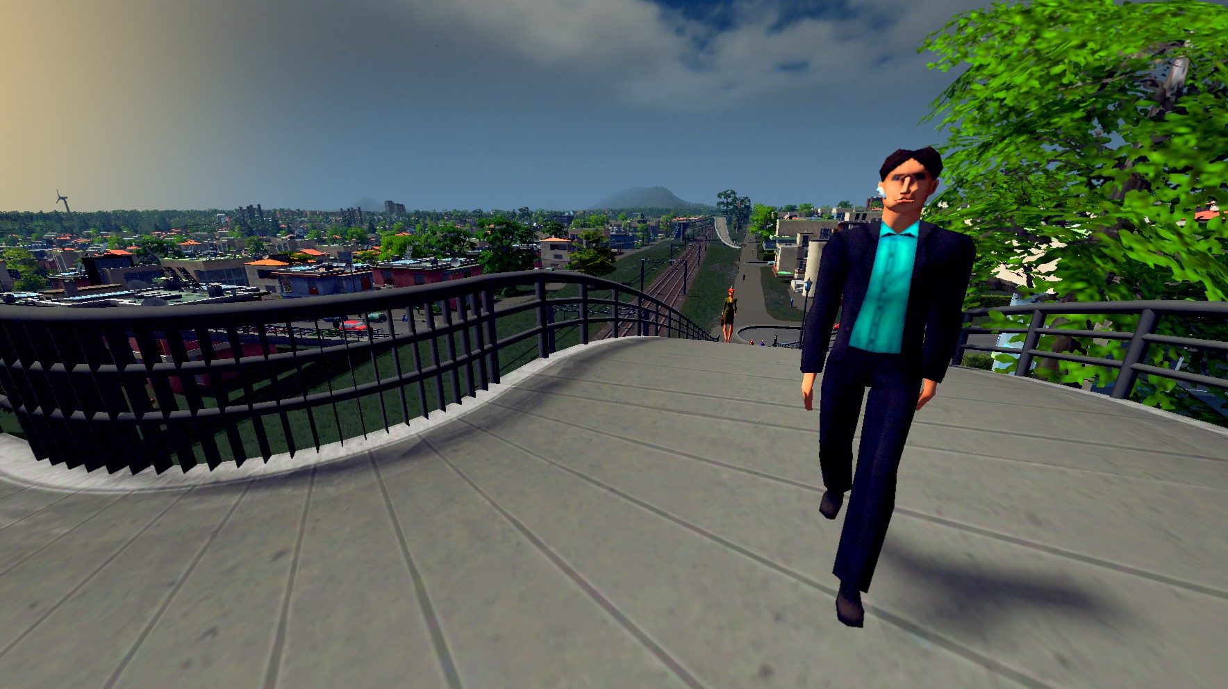 The camera hovers just above the ground, at approximately eye level. It can also travel on raised roads, railroads, and pedestrian paths. Steep roads tend to be a bit glitchy, this is mostly the game’s fault.