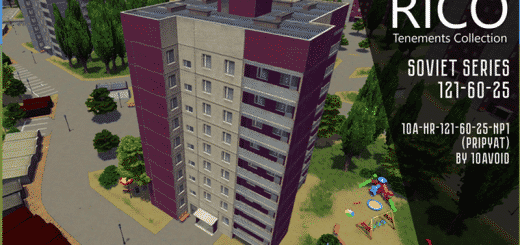 Dieses Gebäude ist ein Stufe 3 Wohngebäude. Es hat 6 Etagen. Es hat 4 Farbvariationen: rot, gelb, grün, blau.