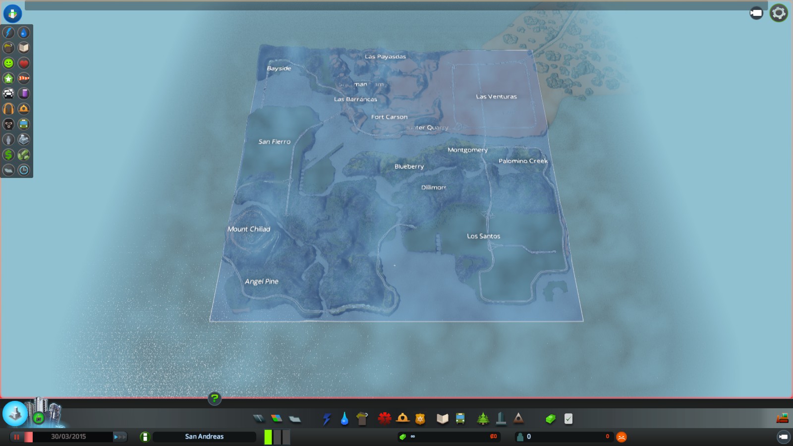 This map fills the full 5×5 grid, so it’s actually a little bigger in scale than the real GTA:SA map, but I wanted it to be as detailed as possible and making it 1:1 (which would have just fit in the 3×3 grid) wouldn’t have cut it. If you’re wanting this map, I recommend you play with a mod that allows you access to all 25 grid spaces.