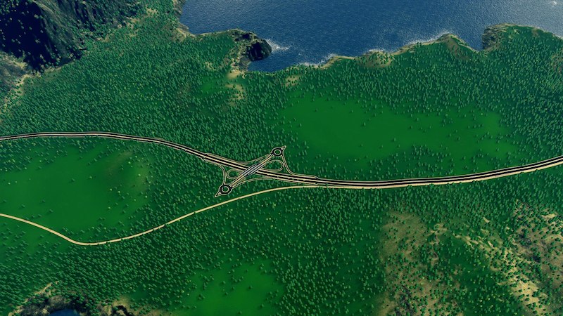 The starting tile intersection is All Through The Night by agusingnavy. All its Network Extensions roads have been changed to Vanilla roads, so you won’t need Network Extensions.