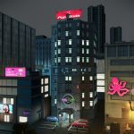 This stubby building helps break up some of the repetitive shapes from the 2nd tier of buildings for HD commercial. I tried to make this building about negative space, instead of bolting on the details, I subtracted some of the would be geometry away. This helped create a pretty interesting shape.
