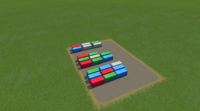 This is a simple 4×6 container yard that aligns with the train cargo terminal. It has a minimal upkeep and provides entertainment value (like a park) for your industrial areas.
